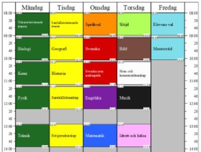 I Excelfilen nedan finns färgkoder kopplade till grundskolans ämnen.